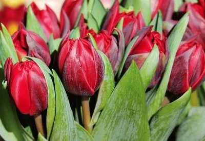 Сияйни червени лалета лале