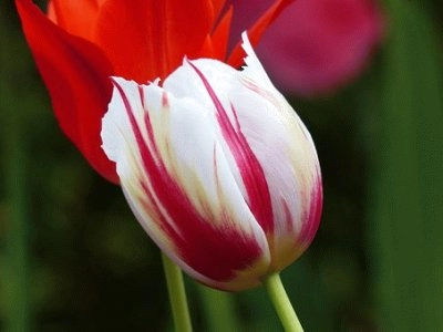 Червени, лилави и жълти лалета лале