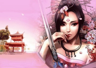 Chica oriental con espada y flores - 遊戲已暫停