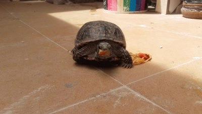 tortuga de tierra comiendo spaguettis