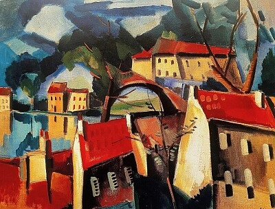 Vlaminck maisons sur ciel vert - 5×5