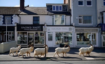 Wild goats on street