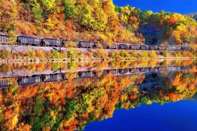 train reflection on Youghiogheny River