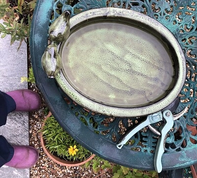 Birdbath on garden table