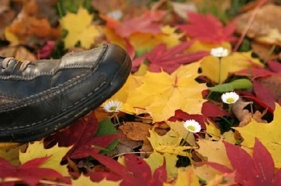 Auf Laub spazieren gehen