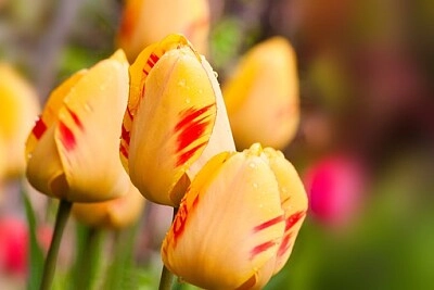 Rote, lila und gelbe Tulpen Tulpe
