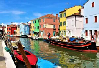 Bunte Gebäude Wasserfahrzeug