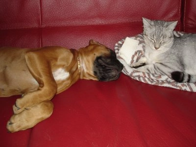 jeune boxer et chat