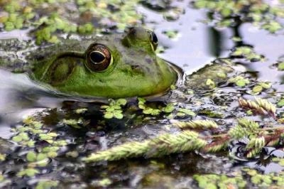 A frog swimming in the lake