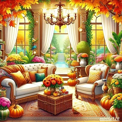 interior, house veranda garden autumn pumpkin, liv