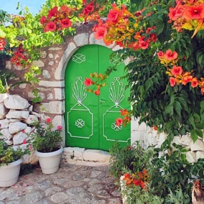 Puerta y flores