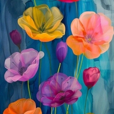 פרחים על רקע כחול