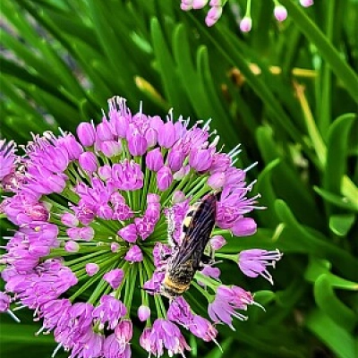 Bee on garlic flower