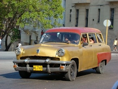 Cuba - Vieille voiture jaune et rouge