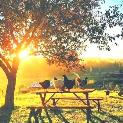Una puesta de sol de pollo Pollo
