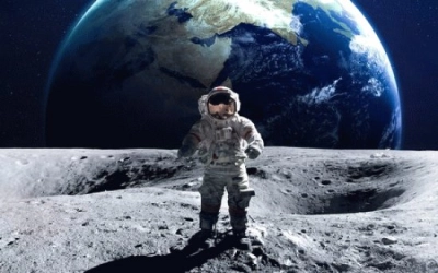 Hermosa noche con luna enorme Espacio exterior