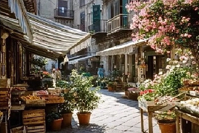 Flores de escaleras de la ciudad Callejón