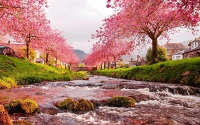 Florecer junto al lago Paisaje