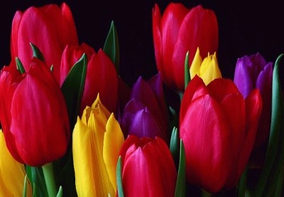 Tulipanes rojos, morados y amarillos Tulipán