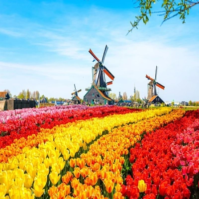 Amsterdam Holanda, horizonte de la ciudad casa holandesa en Tulipán