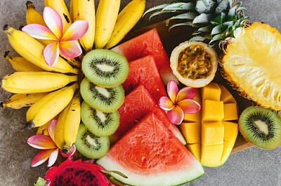 Fiesta de las frutas de verano naranja