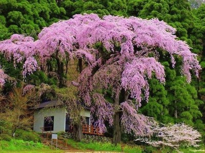 Jardín japonés de cerezos en flor Paisaje