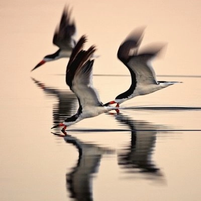 Perroquets en migration au-dessus de l'océan Le bec