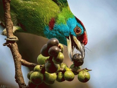 Perroquets en migration au-dessus de l'océan Le bec