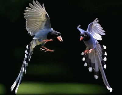 Perroquets en migration au-dessus de l'océan Le bec
