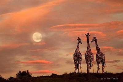 Coucher de soleil à la savane Girafe