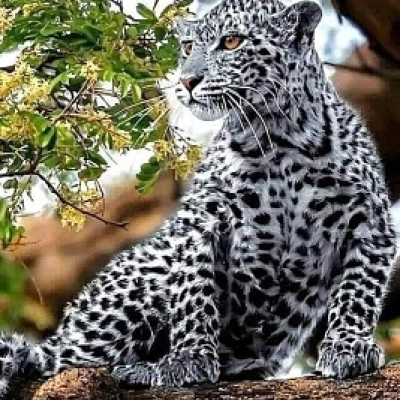 Léopard sur un Brach Jaguar