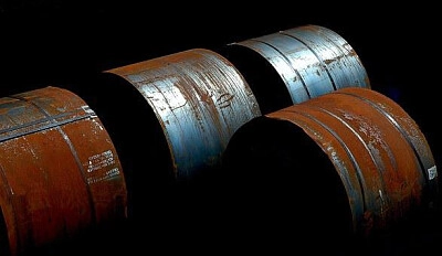 Barils chimiques bleus empilés. Baril
