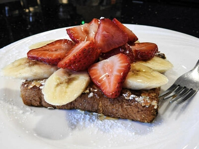 Disposition du pain et des fruits Pain perdu