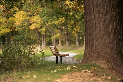 Un banc solitaire en automne Banc