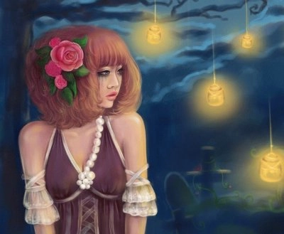 Chica oriental en la noche con luces - Puzzle interrompu