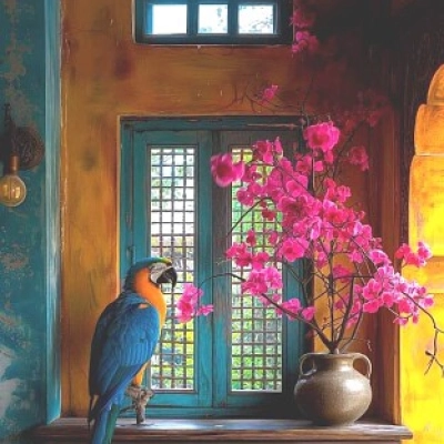 Fleurs de printemps au-dessus d'une fenêtre Art floral