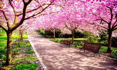 Jardin de fleurs de cerisier japonais Paysage
