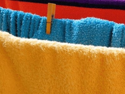 Serviettes colorées: blanc, gris, bleu. macro focus de Serviette