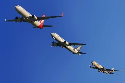Avion de passagers volant au-dessus des nuages Avion de ligne