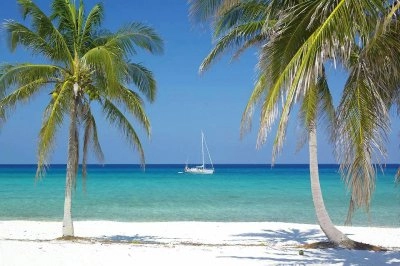 Voilier coloré sur la plage tropicale en été. Voilier