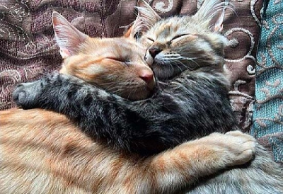 dos gatos abrazados y durmiendoפאזל זה שייך לאלבום משתמש los animales y mas... שייך ל: Danna la veterinaria