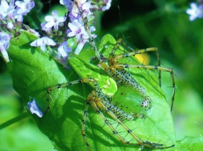 Green spider on green leaf
