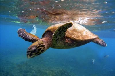 צילום מקרוב על צב ים שוחה