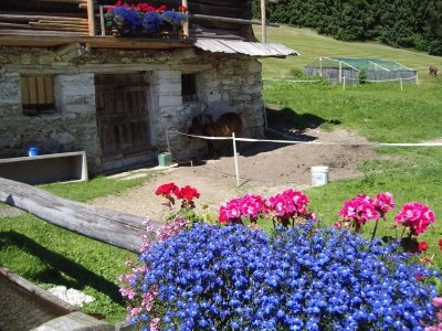 house and flowers in the mountain
