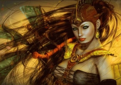 Mujer guerrera con los pelos al viento