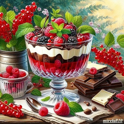 dessert, chocolate, jelly, fruit, raspberries, cur