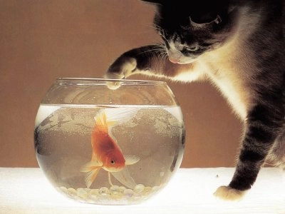 Gato con pecesQuesto puzzle appartiene ad un album utente Animales tiernos y... Proprietario dell'album: Lucesita/65