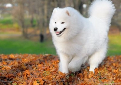 Perro samoyedo, en el parque. - Puzzle in pausa