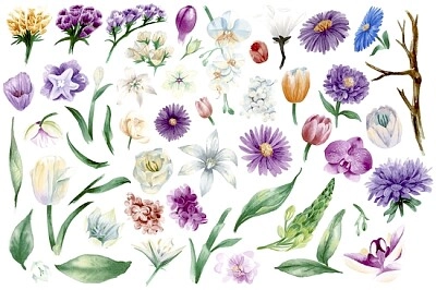 | Ornamenti floreali dell'acquerello dell'annata - 25 Pezzi | |||||