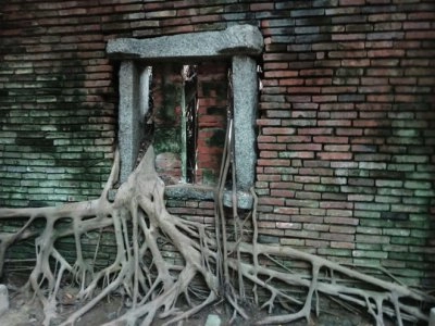 Vecchi mattoni colorati incrinati come sfondo mattone